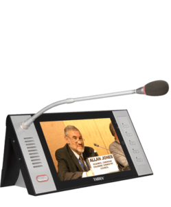 This all-in-one solution combines a traditional conference microphone system with a high resolution monitor offering individual display screens to meeting participants.